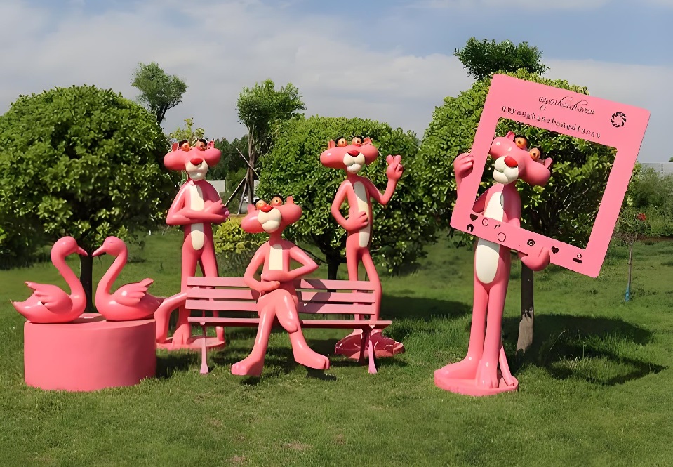 3、玻璃钢雕塑:玻璃纤维增强树脂材质,耐候性强,可定制各类动物、人物及抽象艺术造型。